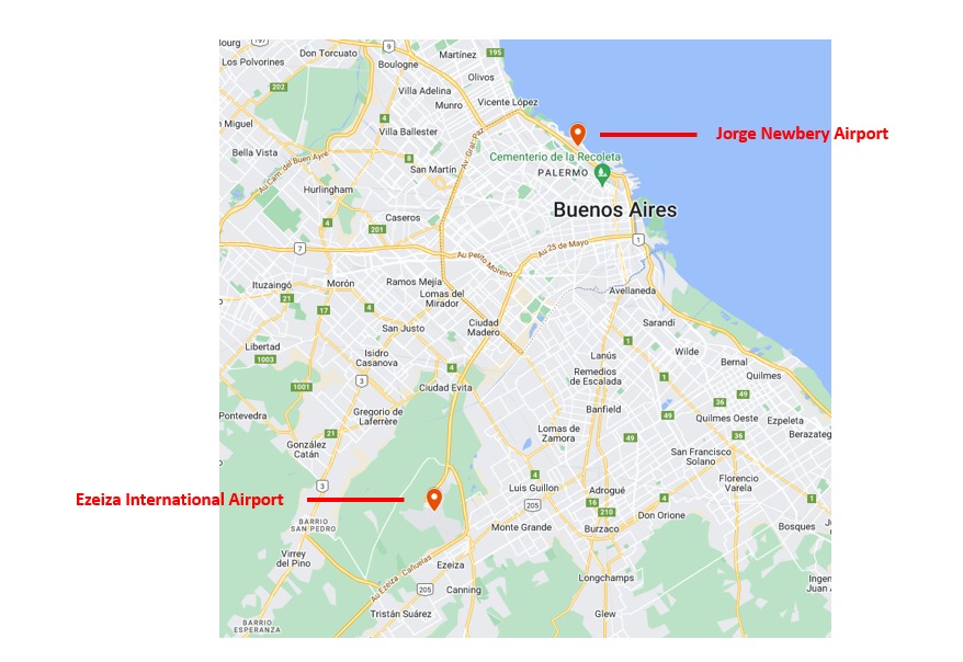 If you have just arrived in Buenos Aires after an international flight and plan to immediately continue with a domestic flight, bear in mind that you might be in the Ministro Pistarini Airport (Ezeiza) and you need to switch airports. Apart from the above mentioned Uber, to get to the Jorge Newbery Airport from Ezeiza, you can take a taxi (they are waiting in front of the airport, but it is much cheaper to order one at the information kiosk inside the airport), or to book a bus with the Tienda León bus company